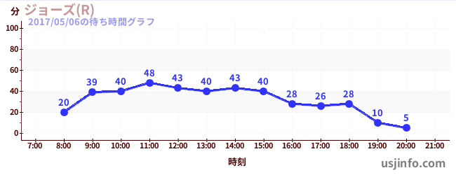 • ジョーズ(R)$B$N(B2017年05月06日の待ち時間