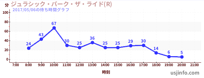 • ジュラシック・パーク・ザ・ライド(R)$B$N(B2017年05月06日の待ち時間