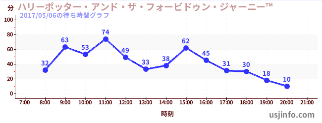 • ハリーポッター・アンド・ザ・フォービドゥン・ジャーニー™$B$N(B2017年05月06日の待ち時間