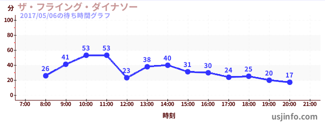 • ザ・フライング・ダイナソー$B$N(B2017年05月06日の待ち時間