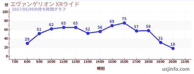 • エヴァンゲリオン XRライド$B$N(B2017年05月06日の待ち時間