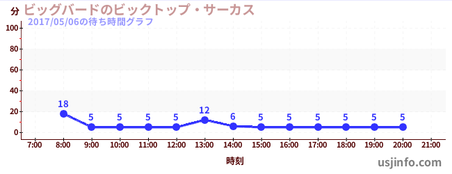 • ビッグバードのビックトップ・サーカス$B$N(B2017年05月06日の待ち時間
