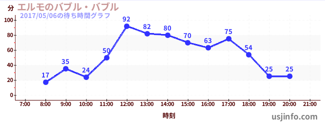 • エルモのバブル・バブル$B$N(B2017年05月06日の待ち時間