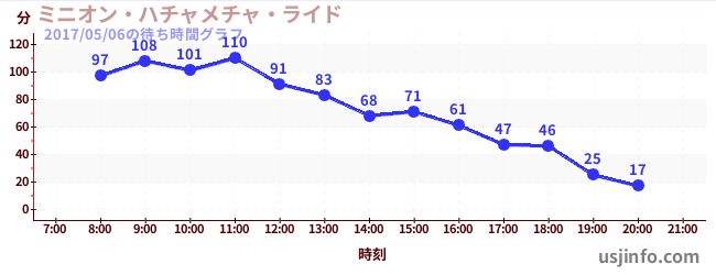 • ミニオン・ハチャメチャ・ライド$B$N(B2017年05月06日の待ち時間