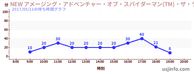 • NEW アメージング・アドベンチャー・オブ・スパイダーマン(TM)・ザ・ライド 4K3D$B$N(B2017年05月11日の待ち時間
