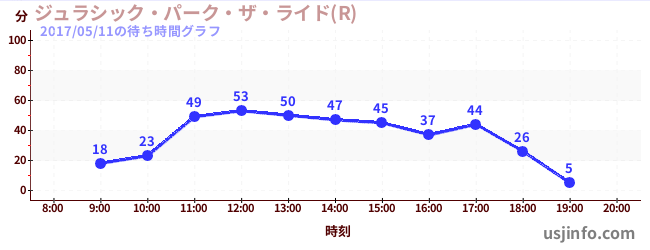 • ジュラシック・パーク・ザ・ライド(R)$B$N(B2017年05月11日の待ち時間