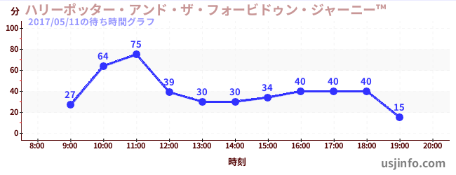 • ハリーポッター・アンド・ザ・フォービドゥン・ジャーニー™$B$N(B2017年05月11日の待ち時間