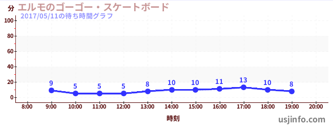 • エルモのゴーゴー・スケートボード$B$N(B2017年05月11日の待ち時間