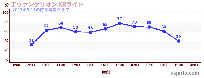 • エヴァンゲリオン XRライド$B$N(B2017年05月11日の待ち時間