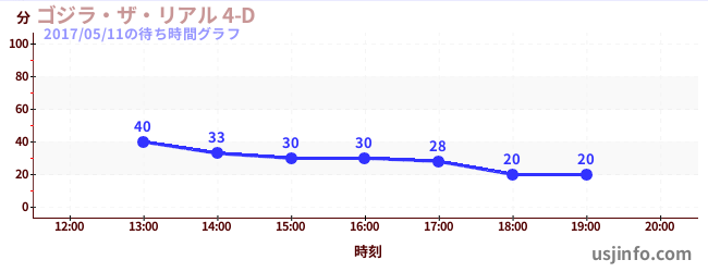 • ゴジラ・ザ・リアル 4-D$B$N(B2017年05月11日の待ち時間