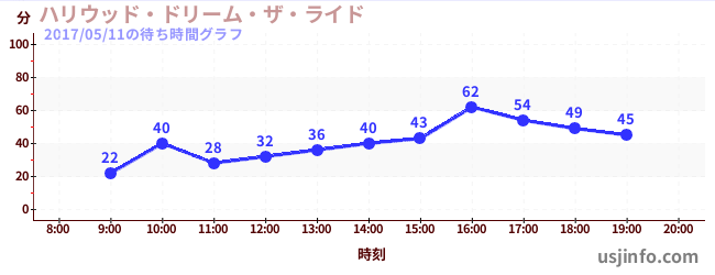 • ハリウッド・ドリーム・ザ・ライド$B$N(B2017年05月11日の待ち時間