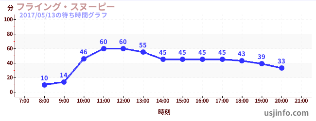 • フライング・スヌーピー$B$N(B2017年05月13日の待ち時間