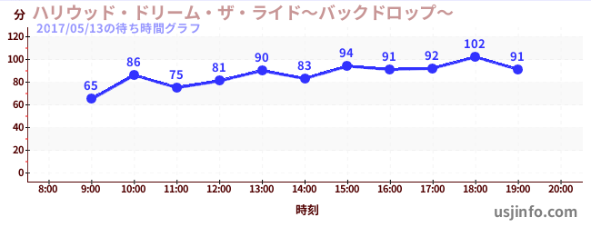 • ハリウッド・ドリーム・ザ・ライド〜バックドロップ〜$B$N(B2017年05月13日の待ち時間