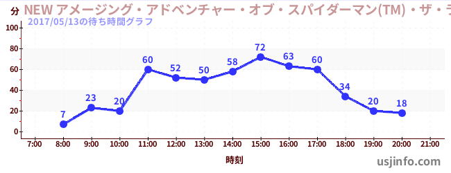 • NEW アメージング・アドベンチャー・オブ・スパイダーマン(TM)・ザ・ライド 4K3D$B$N(B2017年05月13日の待ち時間