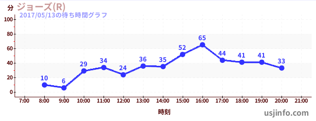 • ジョーズ(R)$B$N(B2017年05月13日の待ち時間