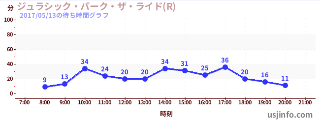 • ジュラシック・パーク・ザ・ライド(R)$B$N(B2017年05月13日の待ち時間