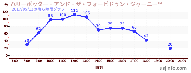 • ハリーポッター・アンド・ザ・フォービドゥン・ジャーニー™$B$N(B2017年05月13日の待ち時間