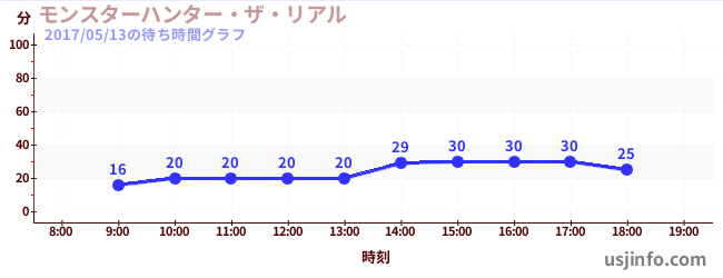 • モンスターハンター・ザ・リアル$B$N(B2017年05月13日の待ち時間
