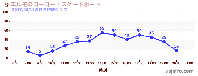 • エルモのゴーゴー・スケートボード$B$N(B2017年05月13日の待ち時間