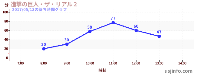 • 進撃の巨人・ザ・リアル 2$B$N(B2017年05月13日の待ち時間