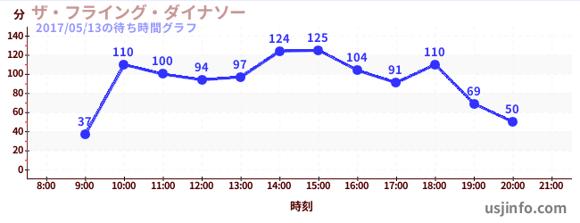 • ザ・フライング・ダイナソー$B$N(B2017年05月13日の待ち時間