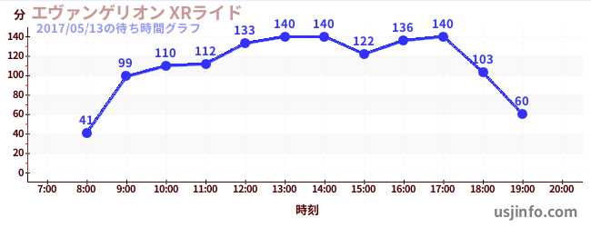 • エヴァンゲリオン XRライド$B$N(B2017年05月13日の待ち時間