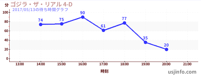 • ゴジラ・ザ・リアル 4-D$B$N(B2017年05月13日の待ち時間