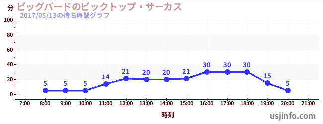 • ビッグバードのビックトップ・サーカス$B$N(B2017年05月13日の待ち時間