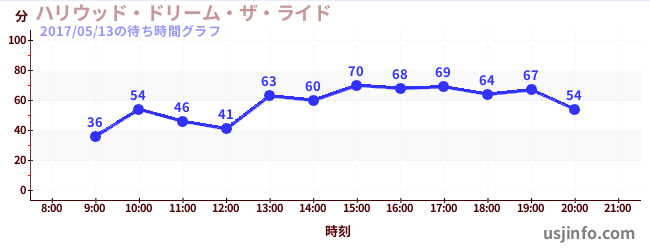 • ハリウッド・ドリーム・ザ・ライド$B$N(B2017年05月13日の待ち時間