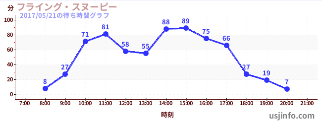 • フライング・スヌーピー$B$N(B2017年05月21日の待ち時間