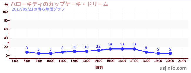 • ハローキティのカップケーキ・ドリーム$B$N(B2017年05月21日の待ち時間