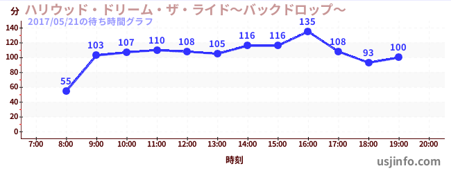 • ハリウッド・ドリーム・ザ・ライド$B$N(B2017年05月21日の待ち時間