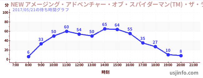 • NEW アメージング・アドベンチャー・オブ・スパイダーマン(TM)・ザ・ライド 4K3D$B$N(B2017年05月21日の待ち時間