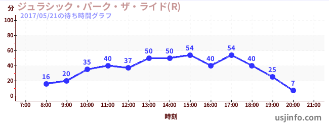 • ジュラシック・パーク・ザ・ライド(R)$B$N(B2017年05月21日の待ち時間