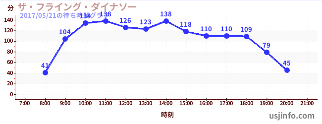 • ザ・フライング・ダイナソー$B$N(B2017年05月21日の待ち時間