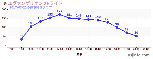 • エヴァンゲリオン XRライド$B$N(B2017年05月21日の待ち時間