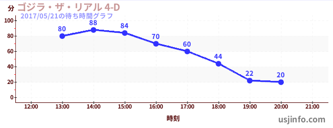 • ゴジラ・ザ・リアル 4-D$B$N(B2017年05月21日の待ち時間