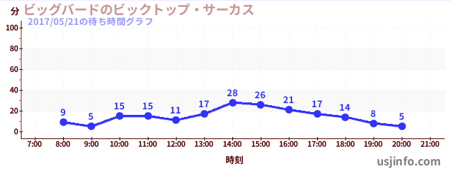 • ビッグバードのビックトップ・サーカス$B$N(B2017年05月21日の待ち時間