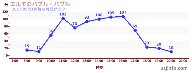 • エルモのバブル・バブル$B$N(B2017年05月21日の待ち時間
