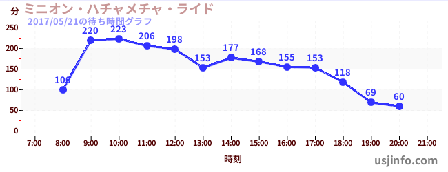 • ミニオン・ハチャメチャ・ライド$B$N(B2017年05月21日の待ち時間