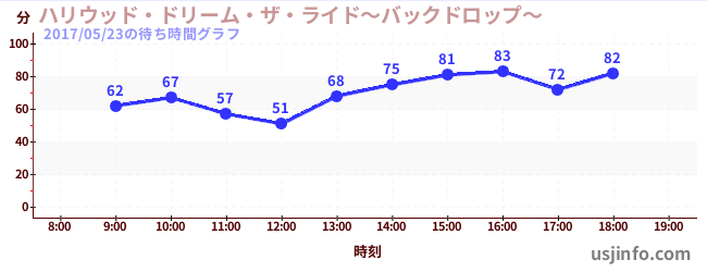 • ハリウッド・ドリーム・ザ・ライド〜バックドロップ〜$B$N(B2017年05月23日の待ち時間
