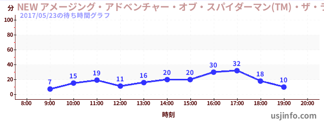• NEW アメージング・アドベンチャー・オブ・スパイダーマン(TM)・ザ・ライド 4K3D$B$N(B2017年05月23日の待ち時間
