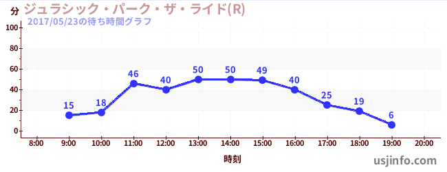• ジュラシック・パーク・ザ・ライド(R)$B$N(B2017年05月23日の待ち時間