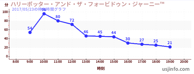 • ハリーポッター・アンド・ザ・フォービドゥン・ジャーニー™$B$N(B2017年05月23日の待ち時間