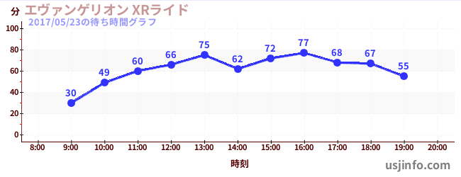 • エヴァンゲリオン XRライド$B$N(B2017年05月23日の待ち時間
