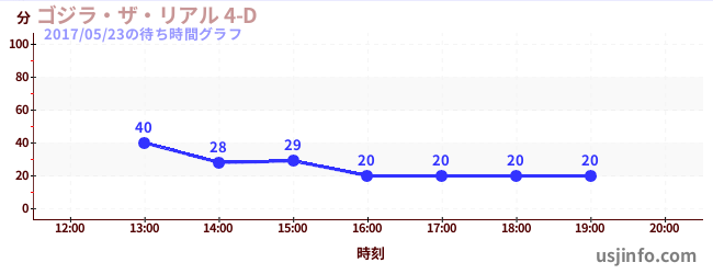 • ゴジラ・ザ・リアル 4-D$B$N(B2017年05月23日の待ち時間