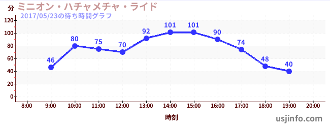 • ミニオン・ハチャメチャ・ライド$B$N(B2017年05月23日の待ち時間