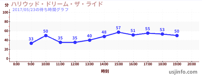 • ハリウッド・ドリーム・ザ・ライド$B$N(B2017年05月23日の待ち時間
