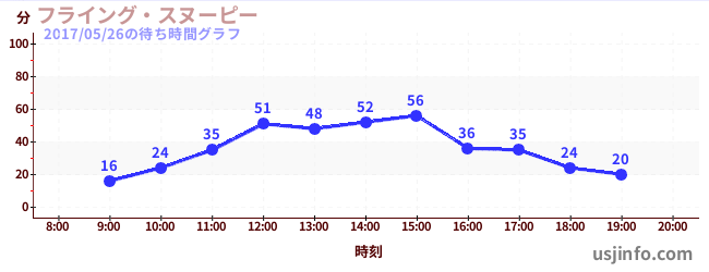 • フライング・スヌーピー$B$N(B2017年05月26日の待ち時間