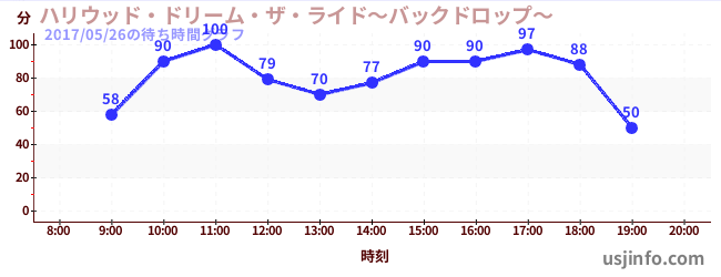 • ハリウッド・ドリーム・ザ・ライド〜バックドロップ〜$B$N(B2017年05月26日の待ち時間